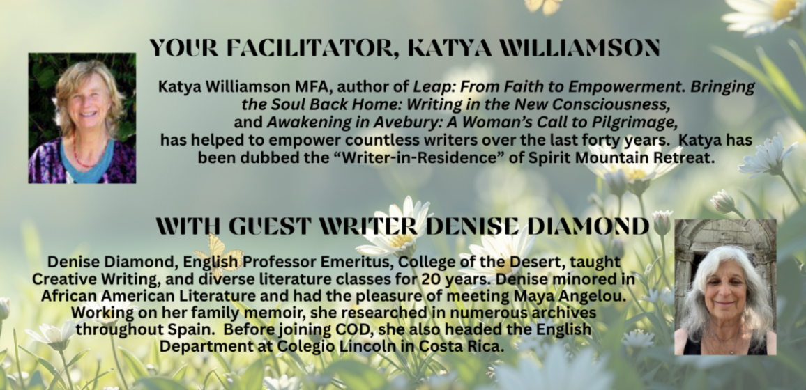 Katya Williamson, MFA, Facilitator, International and national group leader, Writer-in-Residence at Spirit Mountain Retreat, UCR/UCLA Extension Instructor focusing on the power of women.