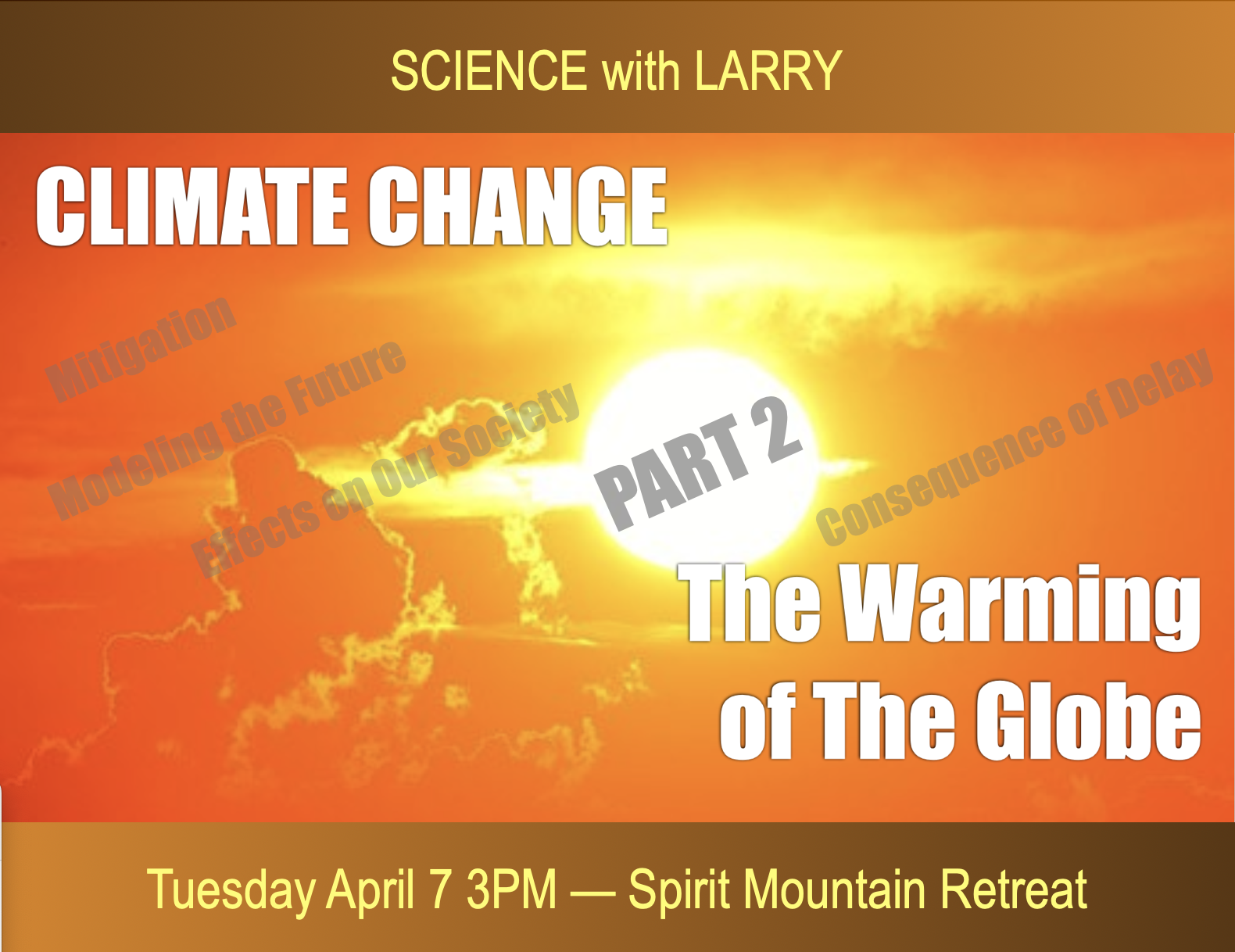 For our special science presentation this coming Wednesday, you to have the option to join from home or come view it on the big screen at Spirit Mountain Retreat.